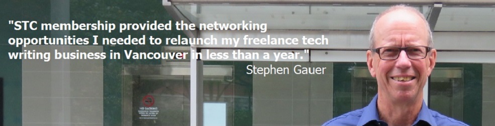 The Society for Technical Communication (STC) is the world's leading organization for advancing technical communication and improving the skills of its members. As a member of STC, you have access to a worldwide network of professionals, international job postings, dozens of free or discounted webinars, product discounts, and many other benefits. You can join one or more local chapters, in Canada and around the world, and special-interest groups that focus on particular aspects of technical communication such as editing, academic writing, consulting, and usability.